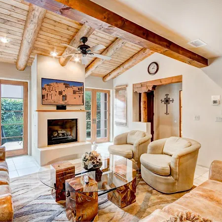 The 2-bedroom apartment is 1.1 miles from Georgia O'keefe Museums, and 1.5 miles from El Museo Cultural De Santa Fe. The New Mexico State Capitol is around 25 minutes by foot from this apartment.